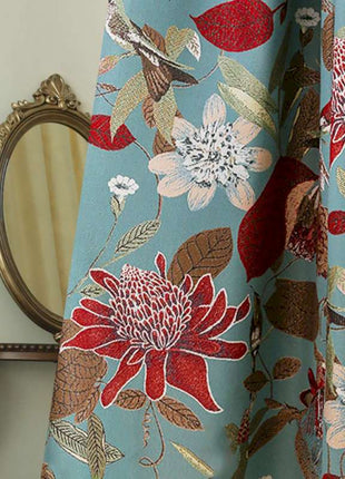 Tenda jacquard fiori rossi e uccelli stile classico sur Mesure